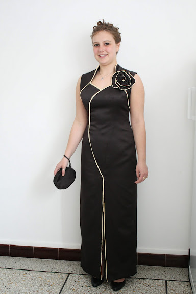 Robe de soirée pour les 20 ans d'une amie avec son petit sac à main.